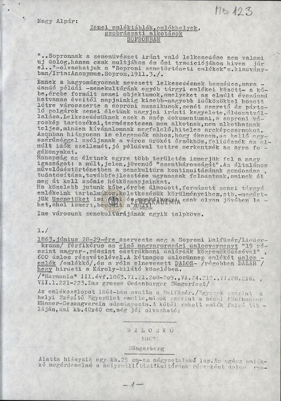 Alpár Nagy: "Musical plaques, memorial sites, sculptures in Sopron"