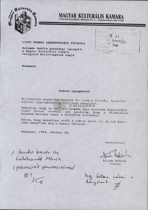Writing of the Deputy Mayor of Berettyóújfalu + letter attachment to Mária Eckhardt from Secretary Miklós Krisár.1. Small town near the border2. The heart affair of the cantor teacher3. The organ of Ferenc Liszt