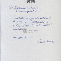 András Luxs writing about the Free University of the Hungarian Society of Cleveland, with a handwritten recommendation for Mária Eckhardt.