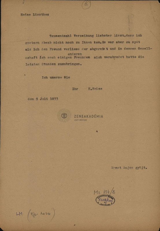 - Letter from Heinrich Heine to Franz Liszt.