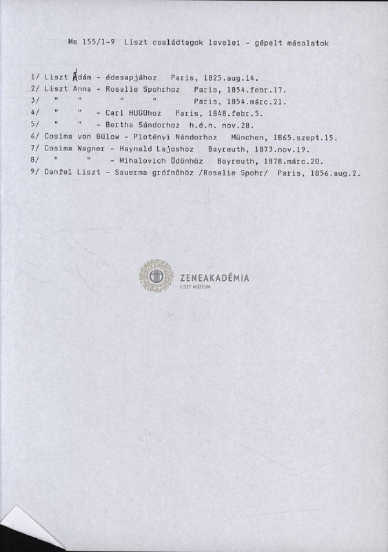 - Letter from Adam Liszt to his father, Georg Adam Liszt.