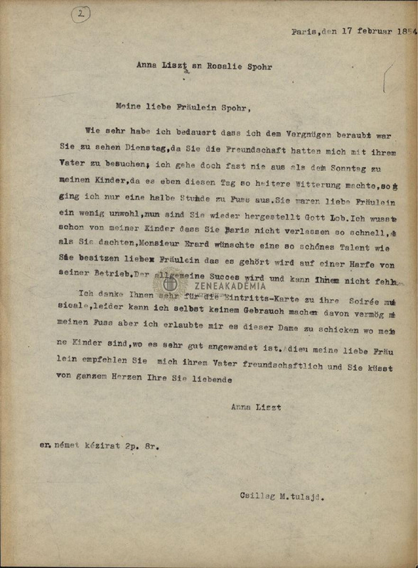 - Letter from Anna Liszt to Rosalie Spohr.