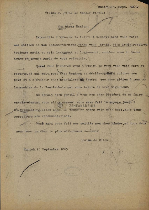 - Letter from Cosima von Bülow to Nándor Plotényi.