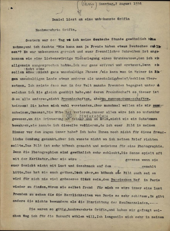 - Letter from Daniel Liszt to Rosalie Spohr (Countess Sauerma).