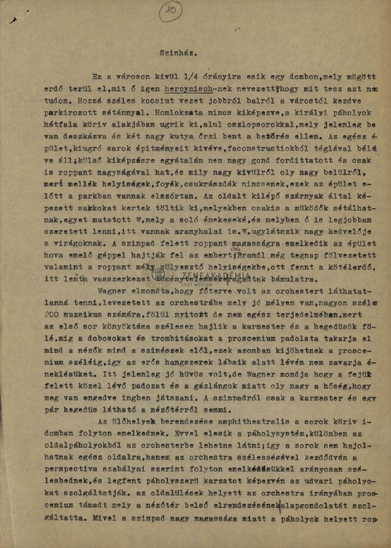 - Letter copy. A trip to Bayreuth, a detailed description of the theater.