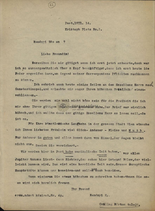 - Letter from Ede Reményi to an unknown lady.