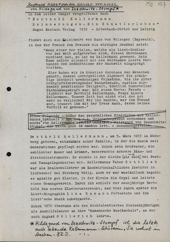 Hildegard Zezschwitz-Stumpf: Berthold Kellermann, Schüler von Liszt