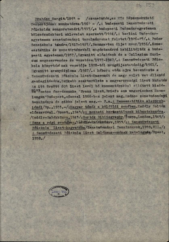 - Curriculum vitae of Margit Prahács for the Pedagogical Lexicon, in 2 copies.
