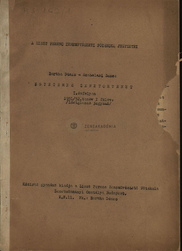 - Bence Szabolcsi - Dénes Bartha: Universal Music History I. évf. 1-2. semester