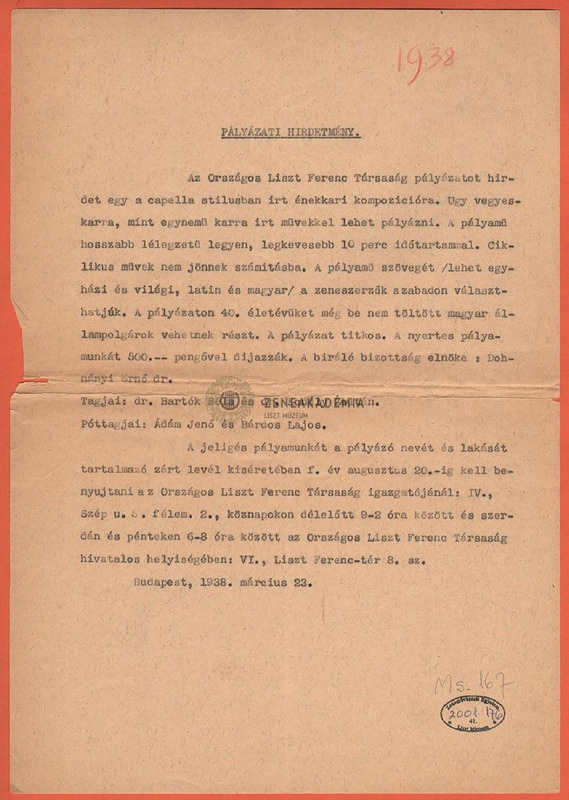 The competition of the National Liszt Ferenc Society for the capella choir composition