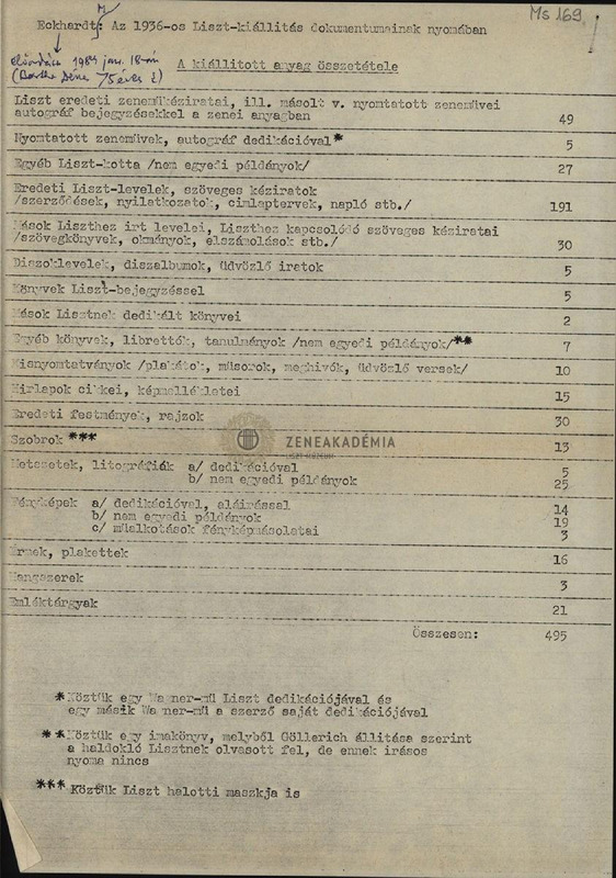 Mária Eckhardt: In the footsteps of the documents of the 1936 Liszt exhibition