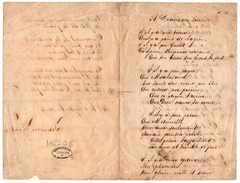 French manuscript with 3 manuscript pages. Attachment: donation letter, letter from Katalin Nagy Aldobólyi (Mrs. Somogyi).