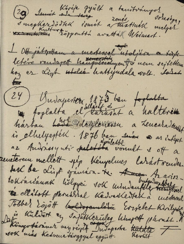 - Autograph sketch of the lecture about Liszt, with notes and additions to it.