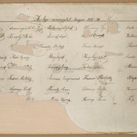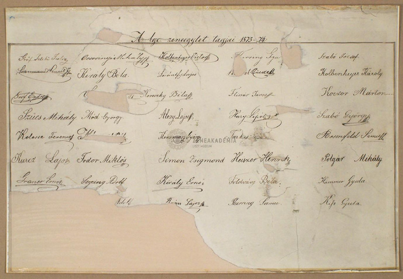 A lyceum zeneegylet tagjai az 1873/74-es évben, papírlap az egylet tagjainak aláírásával.