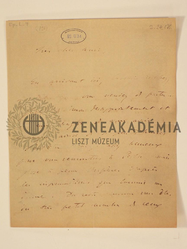 Liszt sajnálja, hogy szeretett barátját elszalasztotta Bécsben és örömmel készül viszontlátni őt Pesten.
