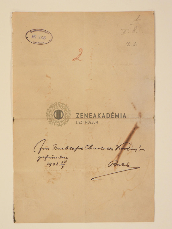 A Liszt által írt szöveg: "Kérem engedjenek be két személyt a Honderű koncertjére. Október 11. Fliszt"