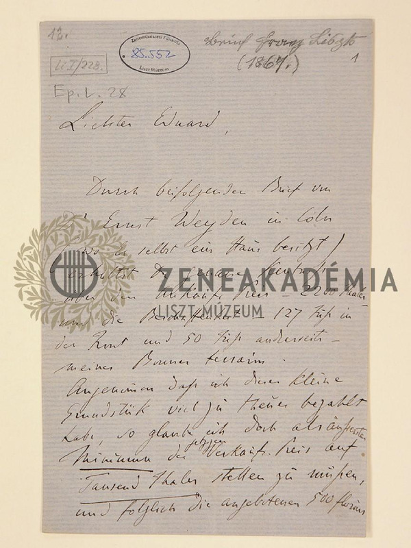 A levél datálatlan. Liszt Rómába költözése előtt több függőben levő ügyét igyekezett lezárni.