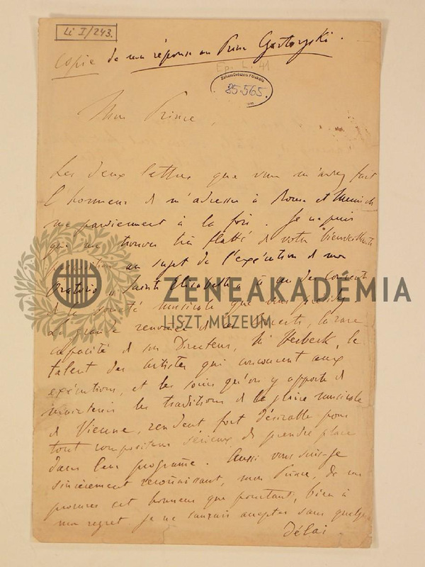Liszt Ferenc levele Constantin Czartoryski herceghez.