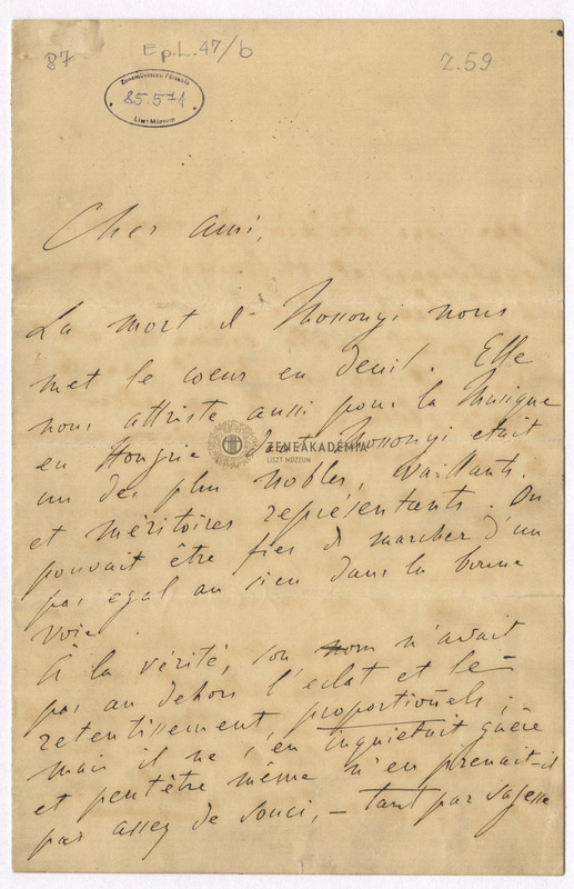 - Liszt Ferenc levele Ábrányi Kornélhoz, másolat.