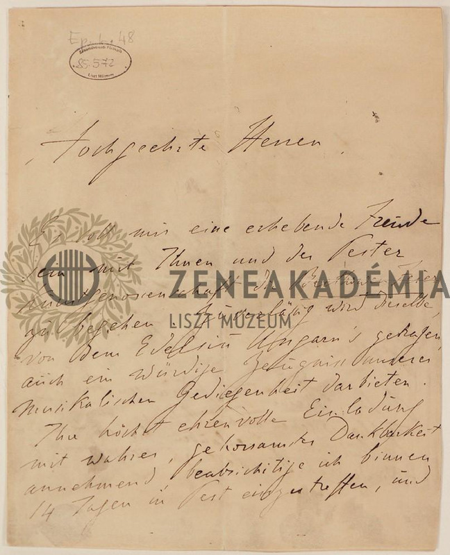 Liszt Ferenc levele a pesti Beethoven- ünnepségek szervezőbizottságának.