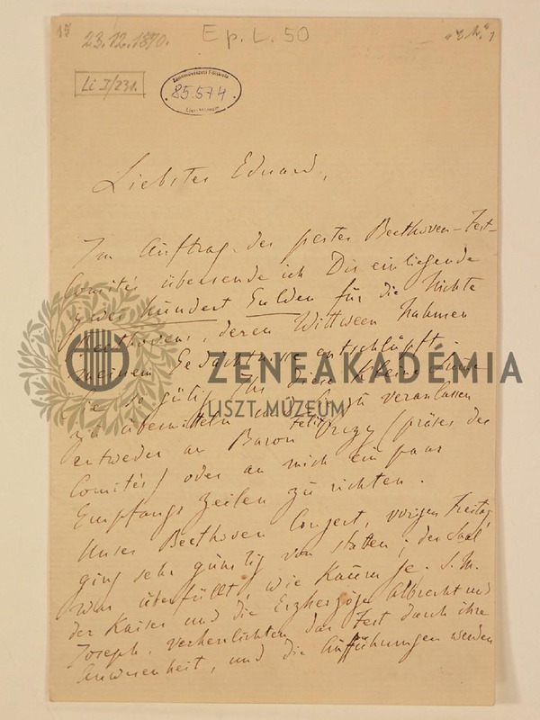 Liszt beszámol a jól sikerült Beethoven-ünnepségről, és Magyarországon való letelepedési szándékáról. Ludwig Nohlnak üzen a tervezett Beethoven-előadással kapcsolatban.