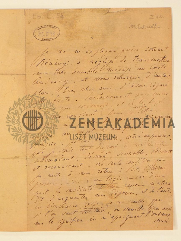 Liszt Ferenc levele Mihalovich Ödönhöz.