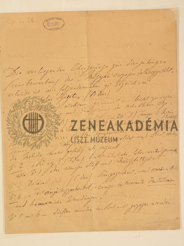 Liszt Ferenc levele a Magyar Országos Daláregyesülethez.