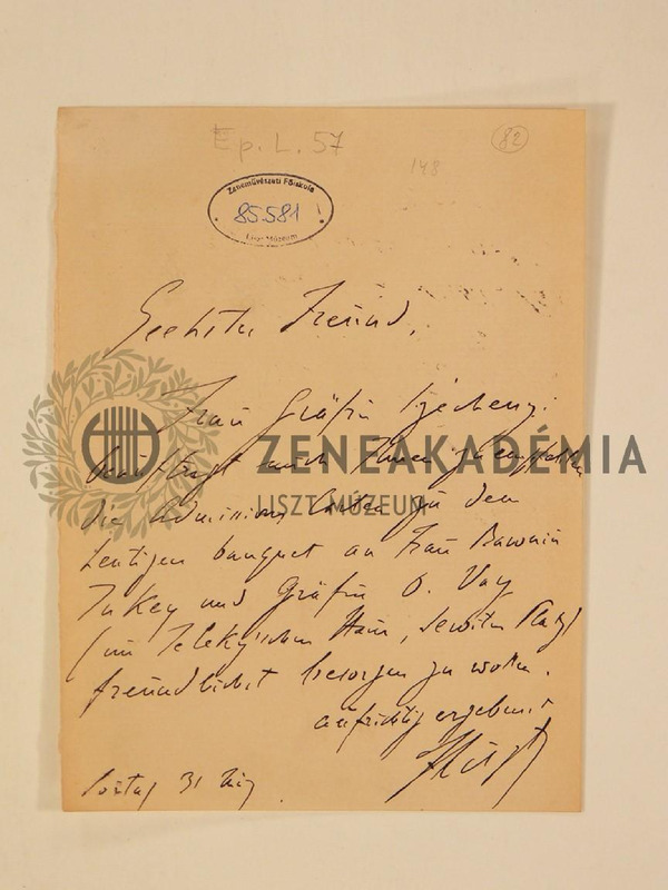 Liszt Ferenc levele Dunkl Nepomuk Jánoshoz.