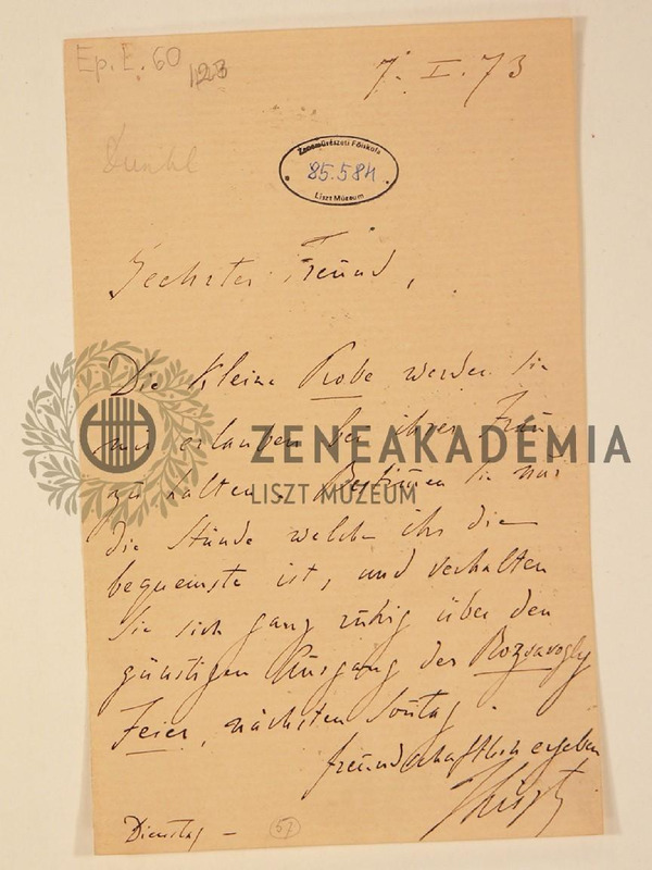 Liszt Ferenc levele Dunkl Nepomuk Jánoshoz.