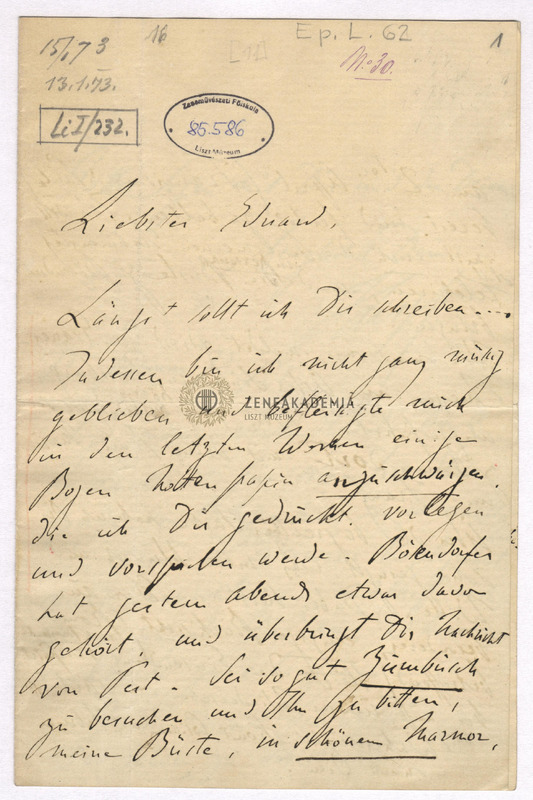 Liszt névnapját Eduard családjával szeretné tölteni. Említi az Esztergomi misét.
