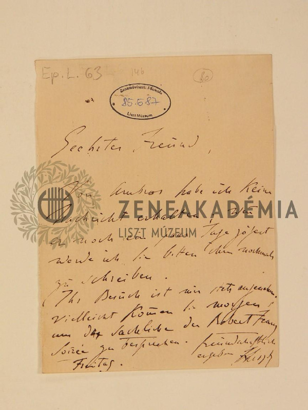 Liszt várja a látogatását, hogy a Robert Franz estélyt megbeszéljék.