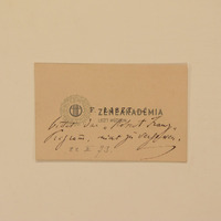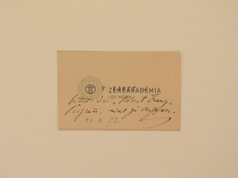 Liszt Ferenc névjegye Dunkl Nepomuk Jánoshoz intézett sorokkal.