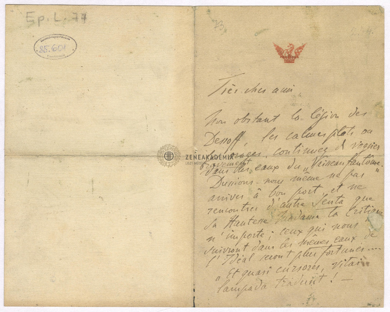 Liszt Ferenc levele Mihalovich Ödönhöz.