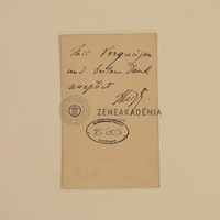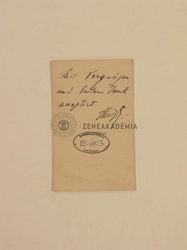 Névjegy Liszt üzenetével Dunkl Nepomuk Jánoshoz.