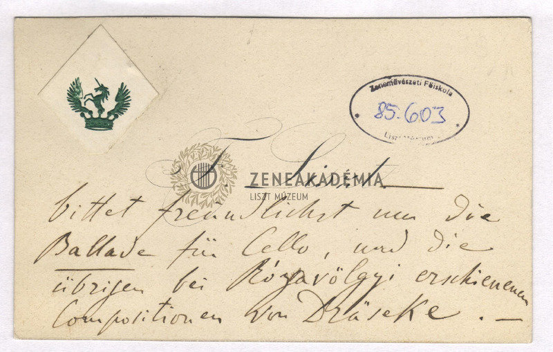 Névjegy Liszt üzenetével Dunkl Nepomuk Jánoshoz.