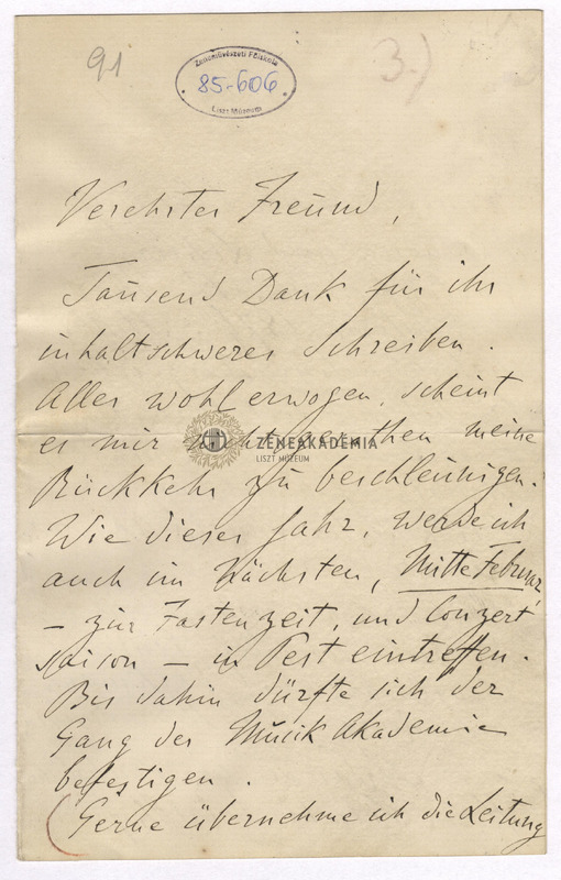 Liszt Ferenc levele Ábrányi Kornélhoz.
