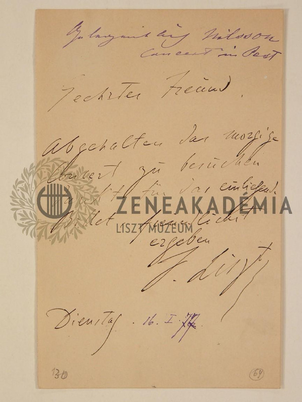 Liszt Ferenc levele Dunkl Nepomuk Jánoshoz.