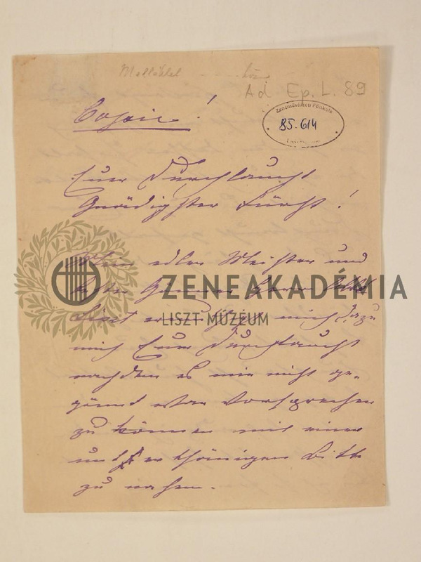 Liszt Ferenc levele Dunkl Nepomuk Jánoshoz.