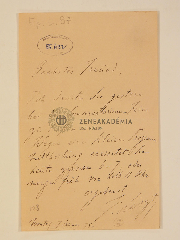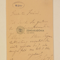 Liszt Ferenc levele Dunkl Nepomuk Jánoshoz.