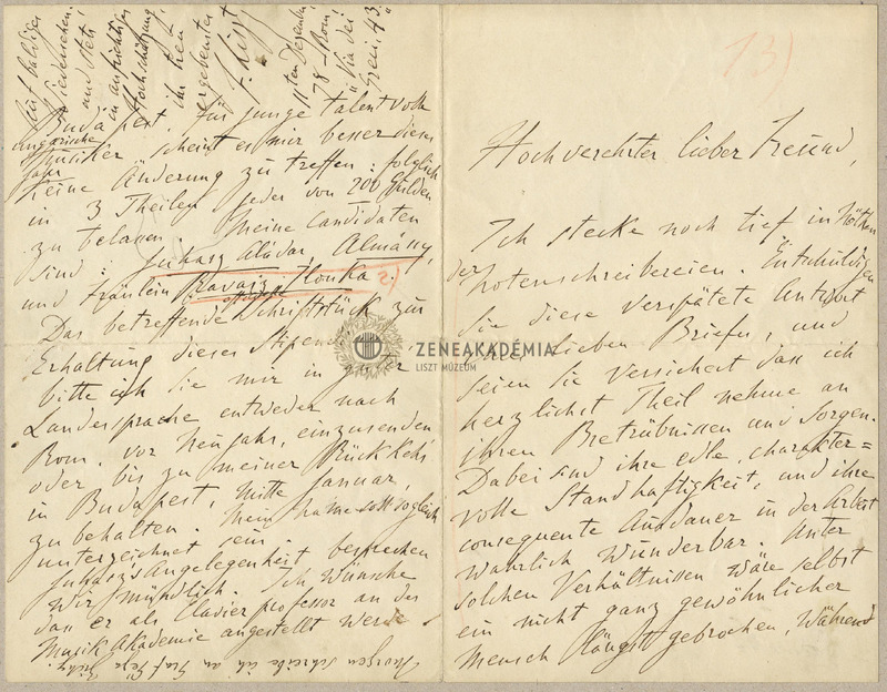 Liszt Ferenc levele Ábrányi Kornélhoz.