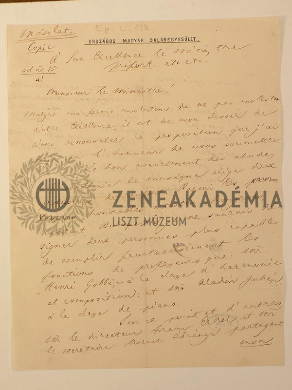Liszt Ferenc levele Trefort Ágoston miniszterhez.