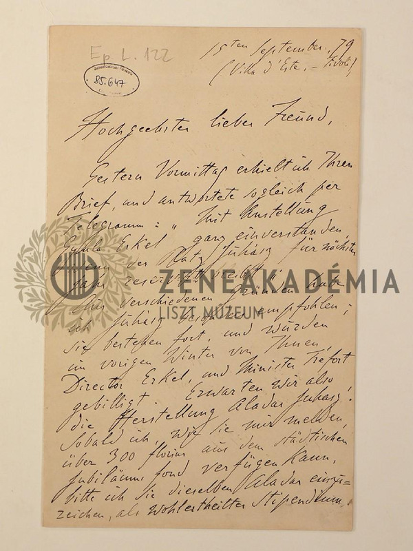 Liszt Ferenc levele Ábrányi Kornélhoz.