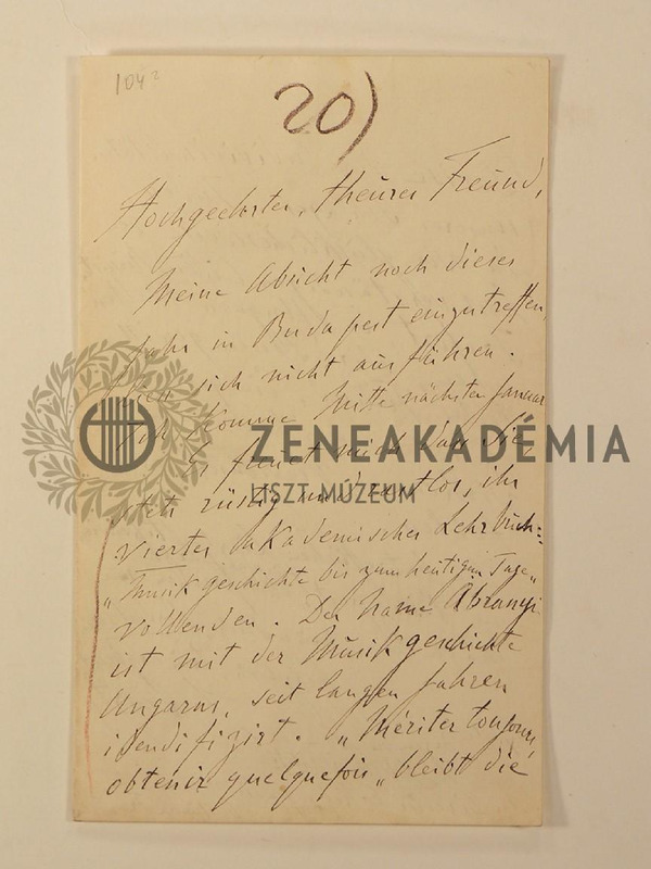 Liszt Ferenc levele Ábrányi Kornélhoz.