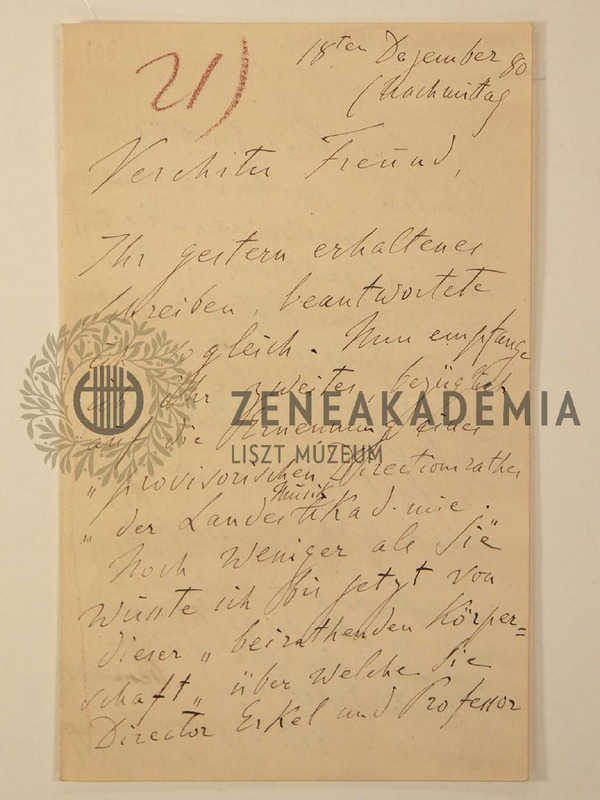 Liszt Ferenc levele Ábrányi Kornélhoz.