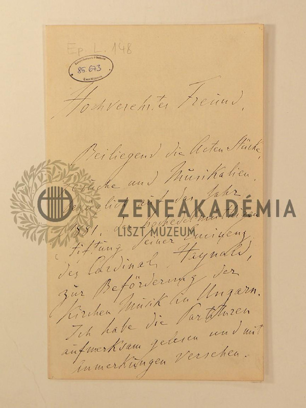 Liszt Ferenc levele Festetics Leó grófhoz.