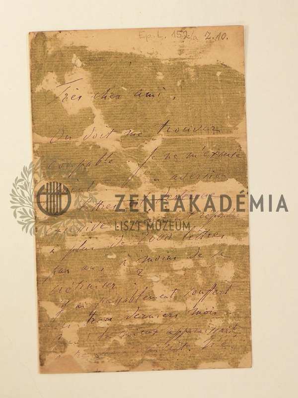 Liszt Ferenc levele Mihalovich Ödönhöz.