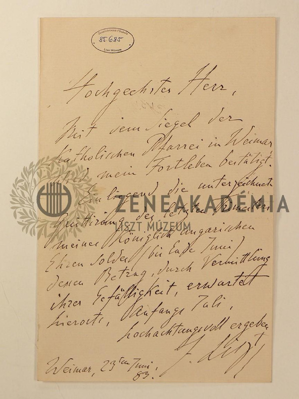 Liszt elküldte a szükséges iratokat és várja tiszteletdíjának megérkezését.
