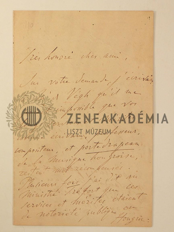 Liszt Ferenc levele Ábrányi Kornélhoz.