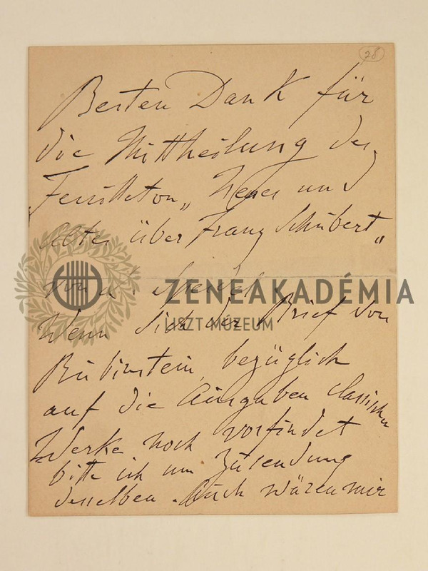 Liszt megköszöni a Schubert-cikket és Rubinstein koncert-programjait kéri.