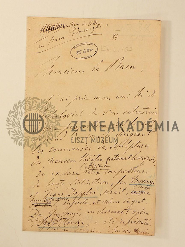 Liszt Ferenc levele Podmaniczky Frigyeshez, fogalmazvány.